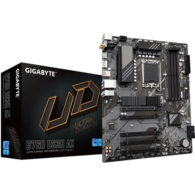 Gigabyte B760 DS3H AX Ultra Durable Intel 1700 Socket Motherboard, ATX, 4x DDR5 Slots, 2x M.2 Sockets, 2x USB-C Port, Fitted I/O Shield, GbE LAN, Wi-Fi 6E, 1x DisplayPort / 1x HDMI Port