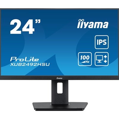 • iiyama PROLITE XUB2492HSU-B6 24 inch IPS Monitor, Full HD, 0.4ms, HDMI, DisplayPort, USB Hub, Freesync, 100Hz, Speakers, Black, Internal PSU, VESA, Height Adjustable, Pivot