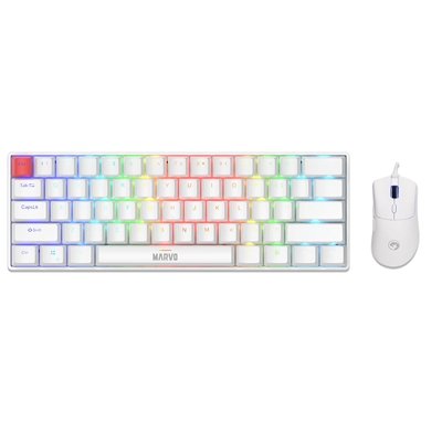 x 1 KEMAR-KG933G-WH – Marvo Scorpion KG933G Saber 61 Wired Mechanical RGB 60% UK Layout Gaming Keyboard (White)